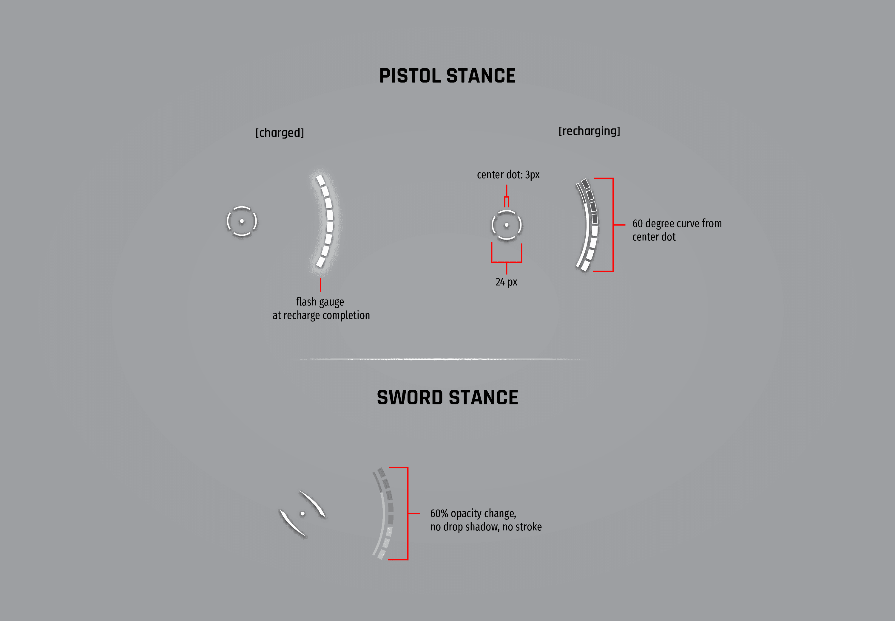After Crucible alpha test, we identified that it was necessary to improve the reticle UI for the characters "Earl" and "Kirri". The reason for the required redesign was that initial implementation was incomplete or not able to be understood by players.