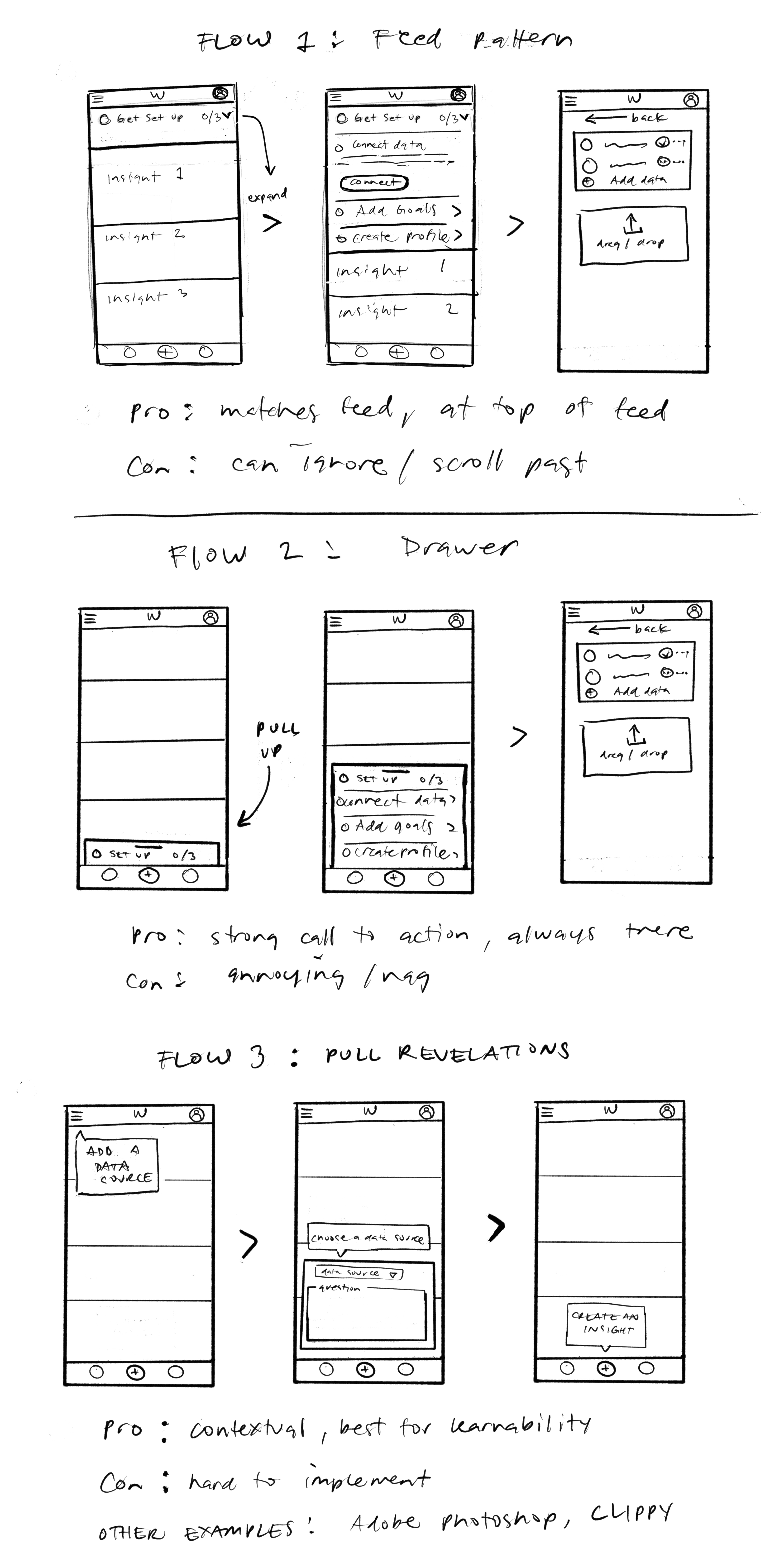Early concept sketches for the onboarding flow of Wallabi