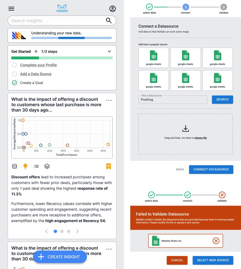 This is a showcase of early design work for Wallabi, an AI-powered business analytics product. As a team, we are currently in the iteration stage of the design and are working out the kinks.